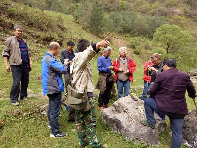 在驗收期間,專家組在詳細聽取了項目負(fù)責(zé)趙西鋒關(guān)于項目野外工作情況匯報后,重點對發(fā)現(xiàn)的金礦化點和兩條晶質(zhì)石墨、金紅石、矽線石礦帶進行了實地檢查驗收。