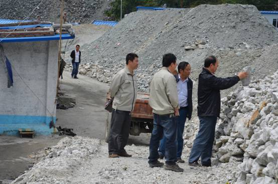 實(shí)地察看礦石質(zhì)量(王隊(duì)長(zhǎng)冀書記察看185二坑生產(chǎn)的礦石)
