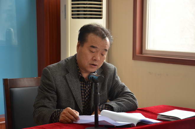 圖為黨委書記、副隊(duì)長(zhǎng)王戰(zhàn)社總結(jié)2014年并部署2015年安保工作