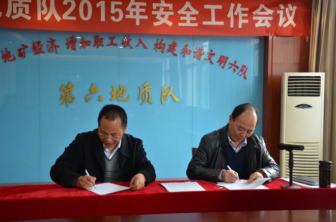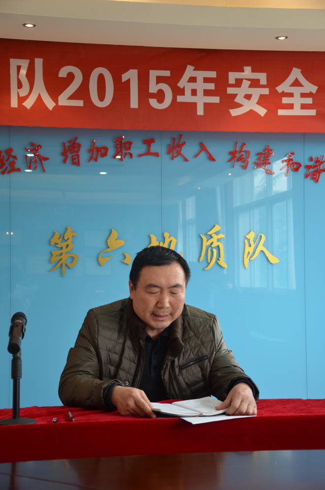 會(huì)議四項(xiàng)內(nèi)容:一是隊(duì)長(zhǎng)王根寶傳達(dá)學(xué)習(xí)了地礦總公司2015年安全生產(chǎn)與治安保衛(wèi)工作會(huì)議精神;二是主管安全生產(chǎn)工作的黨委書記、副隊(duì)長(zhǎng)王戰(zhàn)社總結(jié)了2014年我隊(duì)安全生產(chǎn)與治安保衛(wèi)工作情況,并對(duì)2015年安全生產(chǎn)與治安保衛(wèi)工作進(jìn)行了部署;三是隊(duì)長(zhǎng)王根寶通報(bào)了2014年度安全生產(chǎn)與治安保衛(wèi)責(zé)任考核結(jié)果,并進(jìn)行了兌現(xiàn)獎(jiǎng)勵(lì);四是與11個(gè)實(shí)體或部門簽訂了2015年安全生產(chǎn)與治安保衛(wèi)工作責(zé)任書。