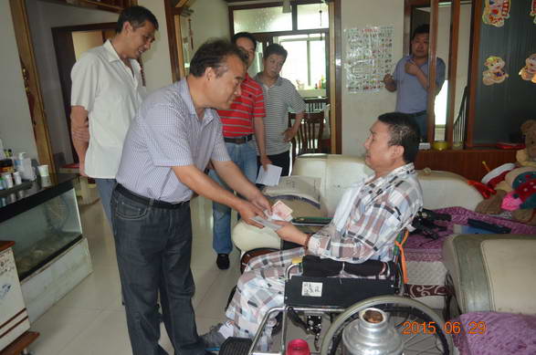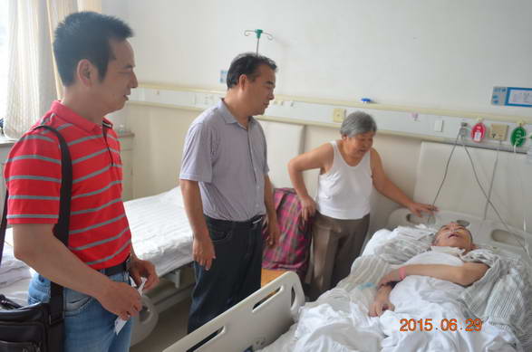 在患重病職工張有權家里,王書記仔細詢問病情恢復情況,并送上了慰問金。張有權雖不能流暢表達,但是熱淚盈眶,緊緊拉住王書記的手。王書記叮囑張有權要好好養(yǎng)病,爭取早日康復。