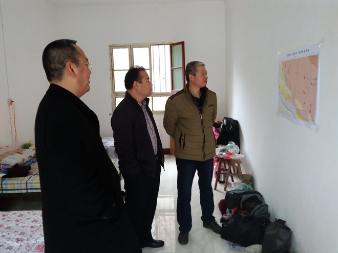 在曹坪駐地,王書記先后到食堂、宿舍察看,詳細(xì)詢問大家的生活飲食、住宿辦公條件情況。在和項(xiàng)目組干部職工座談時(shí),王書記說,開展“兩學(xué)一做”學(xué)習(xí)教育,要結(jié)合工作開展學(xué),結(jié)合我隊(duì)的發(fā)展學(xué),結(jié)合自身的成長學(xué),不斷提高自己的政治和專業(yè)素質(zhì)。咱們黨員干部要給職工起好模范帶頭作用,榜樣的力量是無窮的,使隊(duì)伍充滿始終充滿正能量。要高度重視抓好野外安全生產(chǎn)。注意搞好與駐地地方等外部關(guān)系,注意抓好飲食衛(wèi)生,讓大家吃好,才能工作起來有勁頭。