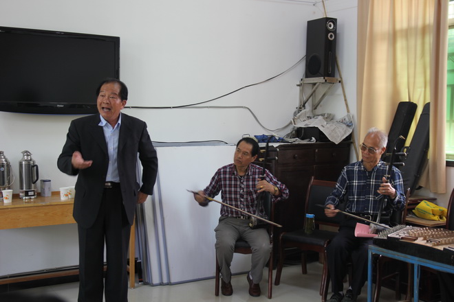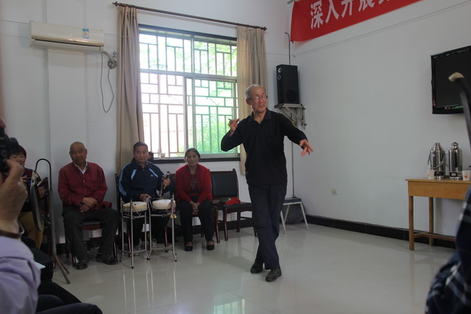 李主任一行來到我隊,顧不上旅途的勞累,直奔正在積極準(zhǔn)備的秦腔演出現(xiàn)場。在看到秦“迷”們井然有序的安排和精心的準(zhǔn)備后,李主任非常滿意。隨后,秦“迷”們分別就自己拿手的秦腔節(jié)目做了匯報演出,國家一級演員任炳漢對每位秦“迷”唱腔、演功及伴奏做一一點評,并肯定每位秦“迷”們對秦腔傳統(tǒng)藝術(shù)的熱愛,以及對傳統(tǒng)藝術(shù)傳承的執(zhí)著精神。對基層秦“迷”們能提供這樣的一個活動場所的單位領(lǐng)導(dǎo)表示感謝。在大家的盛情邀請下,任炳漢先生進行了示范表演。