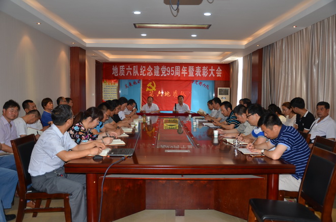 6月27日上午,我隊(duì)紀(jì)念建黨95周年暨“兩學(xué)一做”學(xué)習(xí)教育推進(jìn)會(huì)在隊(duì)部三樓會(huì)議室召開。隊(duì)部地區(qū)黨員、離退休黨員代表、中層以上干部40多人參加了會(huì)議。省地礦總公司副總工程師、隊(duì)長王根寶主持會(huì)議,隊(duì)黨委書記王戰(zhàn)社為黨員干部講了主題黨課。
