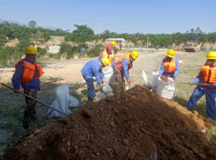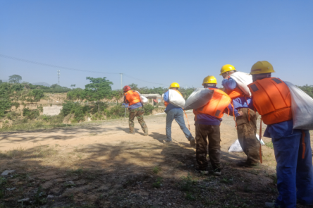 當日上午8點整,秦太選廠組織相關參與人員在辦公樓前進行集中,并對本次演習簡要講解。本次演習假設場景為連續(xù)強降雨,導致有洪水漫入庫內并發(fā)現(xiàn)排洪渠內有樹木雜草,庫內水位不斷上升已接近警戒線,存在漫壩危險,需啟動應急預案。演習地點為寺溝尾礦庫。演習內容為監(jiān)測人員發(fā)現(xiàn)險情及時上報,興地公司立即啟動《尾礦庫生產安全專項應急預案》,各單位、部門應急救援隊員迅速集結、緊急增援。增援隊伍到達現(xiàn)場后,應急搶險分隊、警戒疏散組、物資保障組、技術支持組和醫(yī)療防護組分別按照各自的職能開展相應工作。搶險工作主要分為尾礦庫壩面人工堆積防洪壩,馬道排洪渠清除雜物,尾礦庫下游村莊村民疏散。